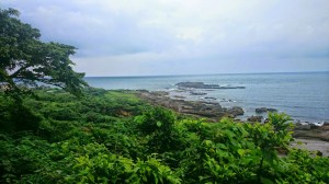 從月洞外涼亭遠眺大海