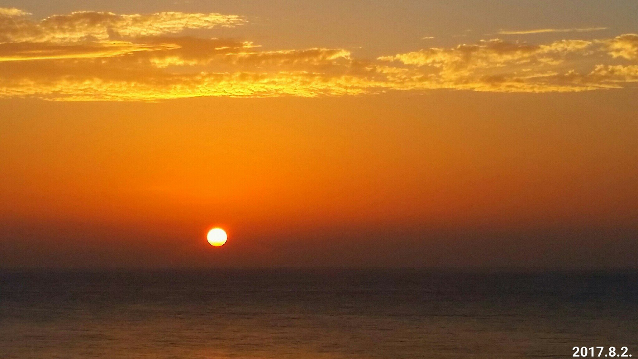 今天早上,近乎完美的太平洋日出,完美的圓!完美的紅!